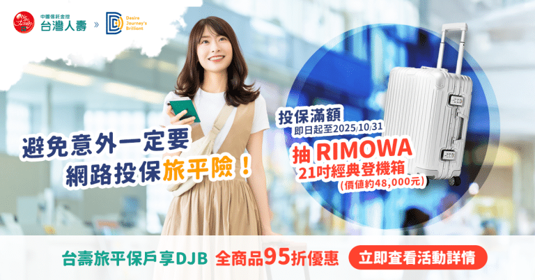 台灣人壽|網路投保海外旅平險四重保障一次滿足 還可抽RIMOWA經典登機箱